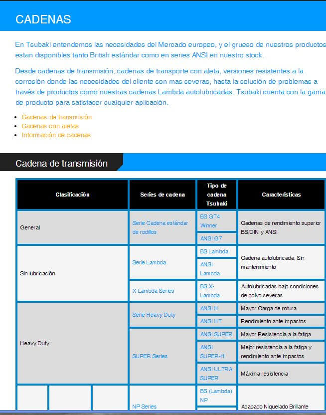 CATÁLOGO CADENA TSUBAKI