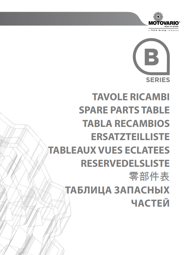 - Disponible en las versiones: B – predisposición conexión motor, IB – con eje macho de entrada, CB – con motor compacto, PB – predisposición conexión motor con junta elástica.